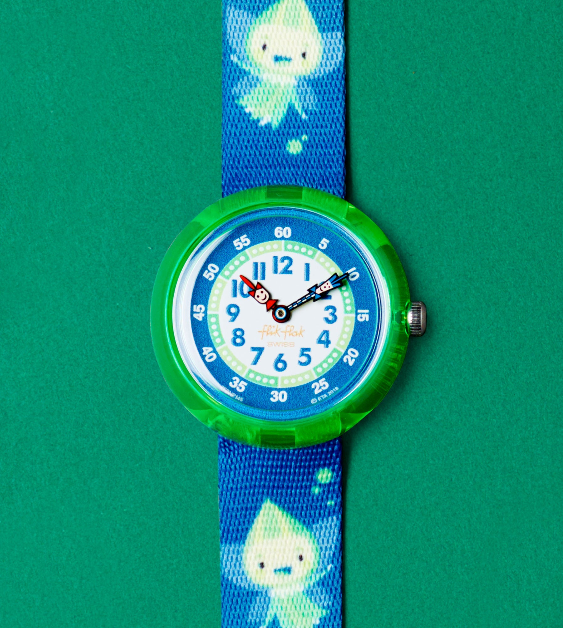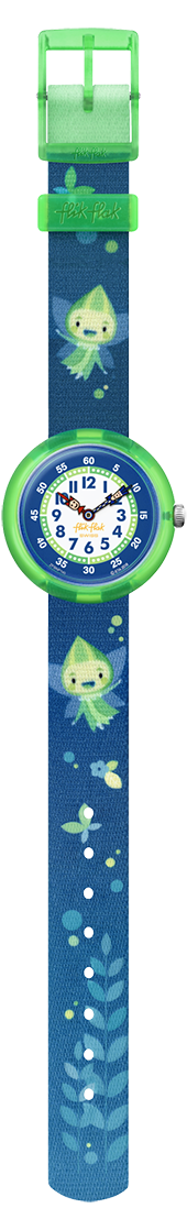 Avec son boîtier en plastique vert fluo transparent, la GLOWLINS promet des nuits inoubliables. Son bracelet en textile imprimé, lavable en machine à 40°C, est parée de fées scintillantes qui lui donneront une imagination débordante, jour et nuit. Elle est fabriquée en Suisse pour une précision et une fiabilité exceptionnelles.